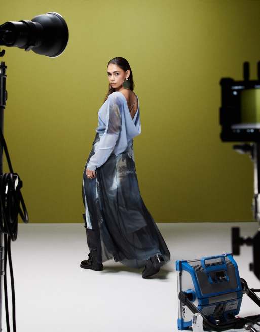ASOS DESIGN - Maxi-jurk met ongelijke zoom, onafgewerkte naden, diepe lage achterkant en paardenprint