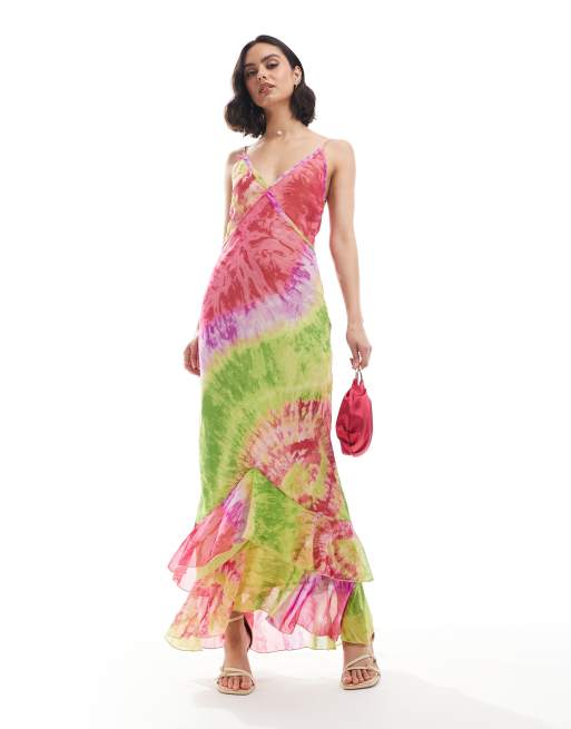 ASOS DESIGN - Maxi jurk met V-hals en gekruiste bandjes op de rug en onafgewerkte randen
