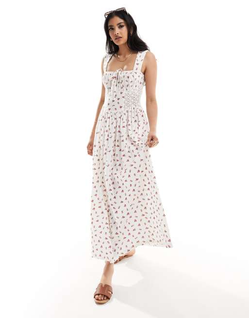 ASOS DESIGN - Maxi jurk met vierkante hals en gerimpelde buste met kanten inzetstukken in roze