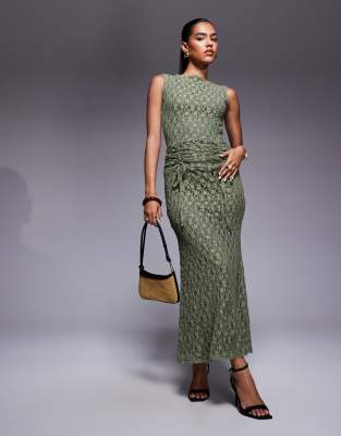 ASOS DESIGN - Maxi jurk van kant met gerimpelde tailleband in groen