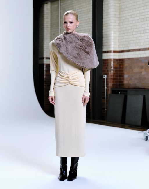 ASOS DESIGN - Maxi jurk van modal met lange mouwen en gerimpeld detail in lichtgeel