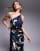 ASOS DESIGN - Maxi jurk van satijn met paneel van chiffon met drapering en abstracte print in zwart-wit