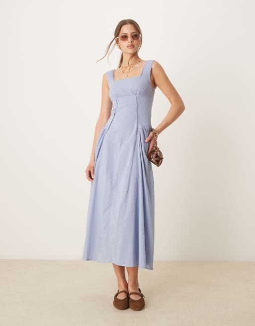 ASOS DESIGN - Maxi prairie-jurk met vierkante hals en verlaagde taille in blauw