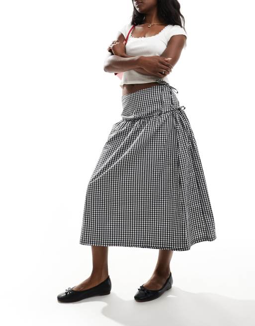 ASOS DESIGN - Maxi rok met lage taille, gestrikte zijkant en gingham ruit in zwart