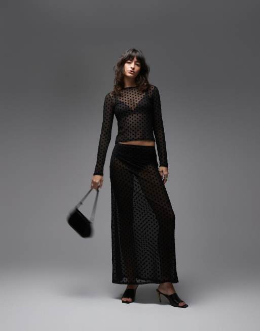 ASOS DESIGN - Maxi rok van doorschijnend mesh met stippen in zwart