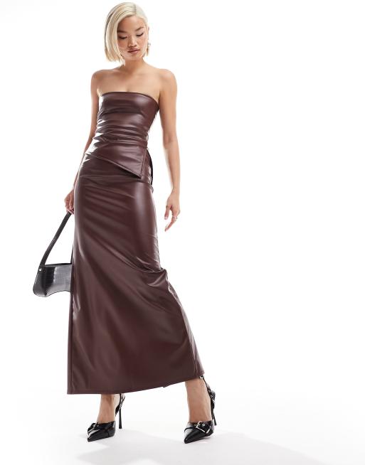 ASOS DESIGN - Maxi-rok van imitatieleer in chocolade, deel van co-ord set