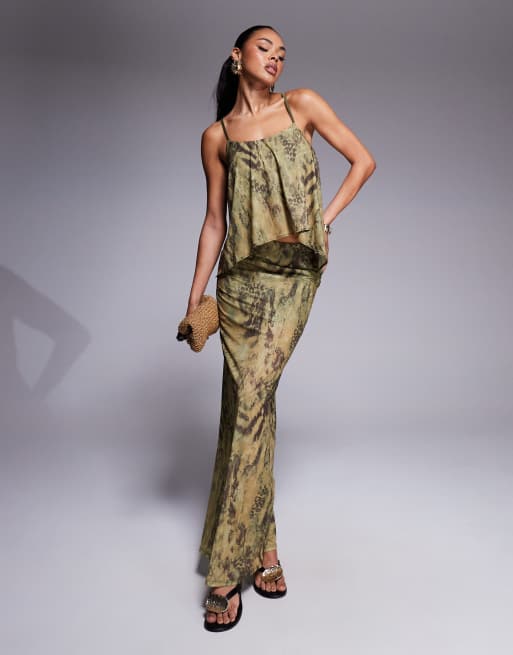 ASOS DESIGN - Maxi rok van mesh met split in groene dierenprint, deel van co-ord set