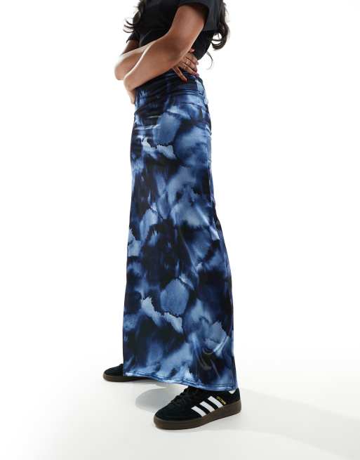 ASOS DESIGN - Maxi-rok van satijnen keperstof met bloemenprint in blauw