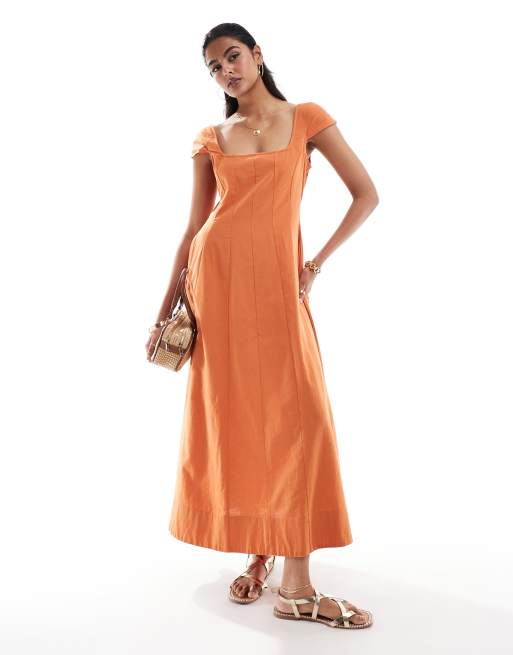 ASOS DESIGN - Maxi tennisjurk met naden en kapmouwtjes in donkere mangokleur