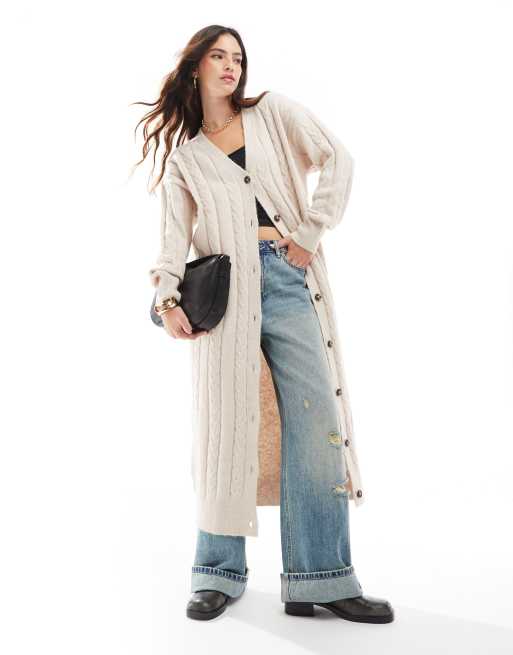 ASOS DESIGN - Maxi vest met kabels in crème