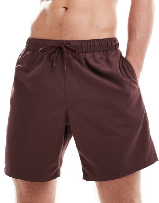 ASOS DESIGN - Medium lange zwemshort in bruin