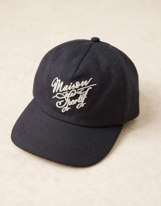 ASOS DESIGN - Melton - Baseballpet met borduursel in marineblauw