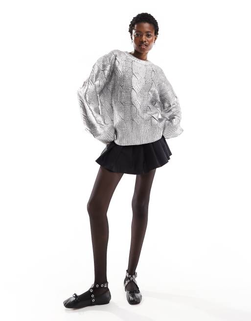 ASOS DESIGN - Metallic oversized trui met kabeldetail in zilver