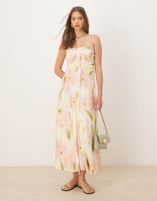 ASOS DESIGN - Midi bandeau-jurk met rok met godetplooien in gevlekte bloemenprint