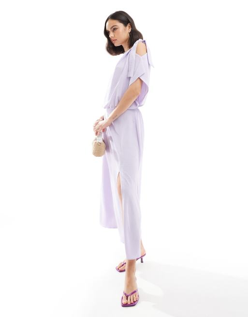 ASOS DESIGN - Midi blousonjurk met gestrikt schouderbandje in lila