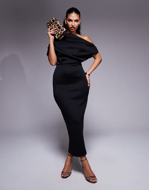ASOS DESIGN - Midi-jurk in scubastijl met dramatische halslijn in zwart