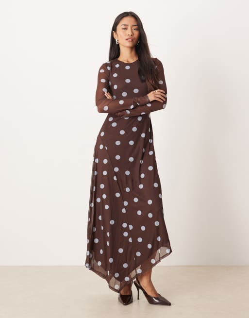ASOS DESIGN - Midi jurk met asymmetrische zoom in stippenprint