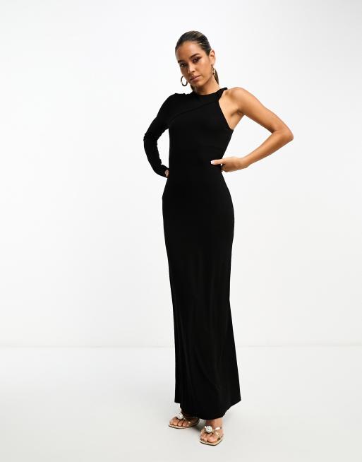 ASOS DESIGN - Midi-jurk met blote schouder en gedraaid detail in zwart