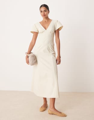 ASOS DESIGN - Midi jurk met fladdermouwen en open achterkant in neutraal