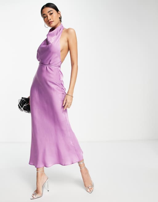 ASOS DESIGN - Midi-jurk met gedrapeerde halslijn, halternek en gestrikte taille