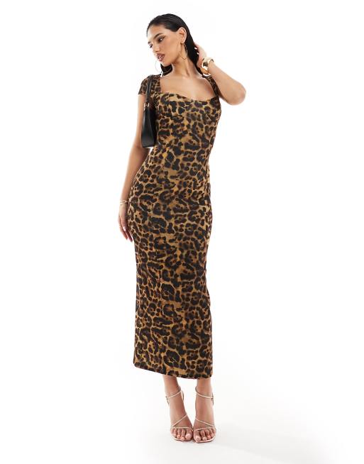 ASOS DESIGN - Midi-jurk met kapmouwtjes en hartvormige halslijn in luipaardprint