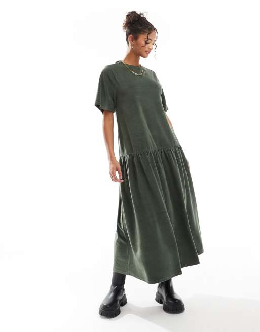 ASOS DESIGN - Midi-jurk met koordje en uitlopende zoom in groen