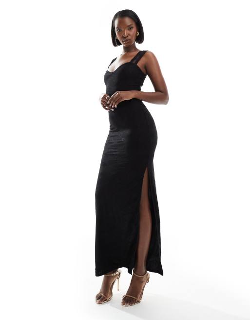 ASOS DESIGN - Midi jurk van kant met bandjes en hartvormige halslijn in zwart
