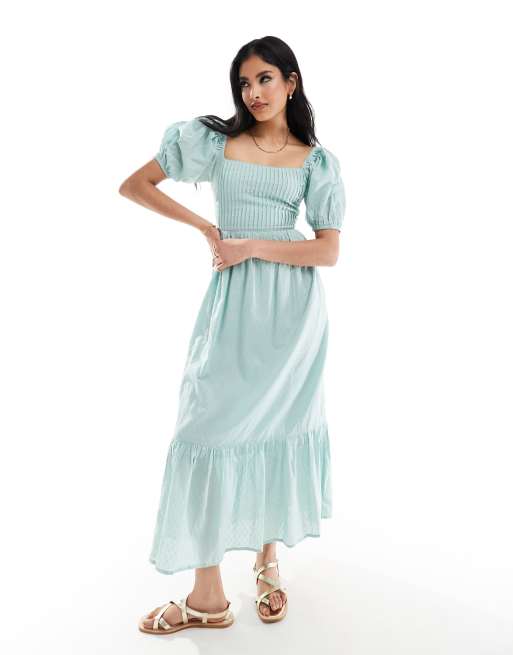 ASOS DESIGN - Midi-jurk van katoenen dobbystof met veters aan de achterkant in saliegroen