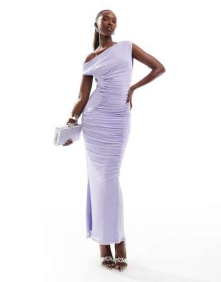 ASOS DESIGN - Midi-jurk van mesh met blote schouders in lila