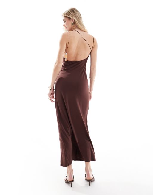 ASOS DESIGN - Midi jurk van modal met bandjes met kralen in chocoladebruin