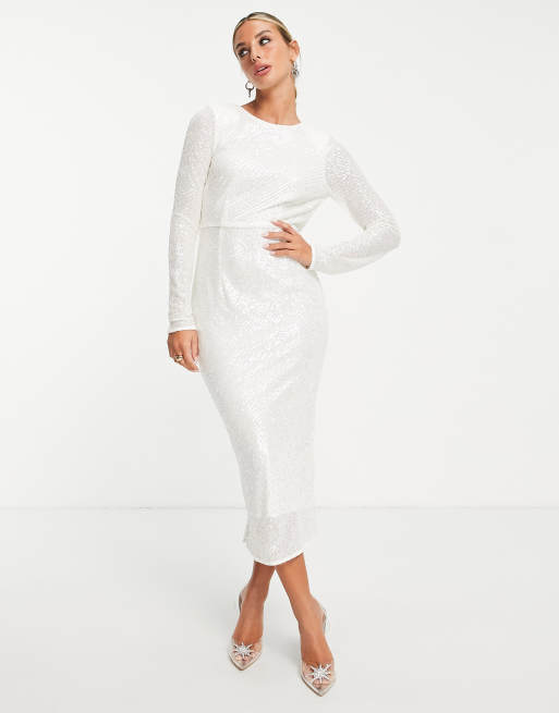 ASOS DESIGN - Midi kokerjurk met lovertjes in wit