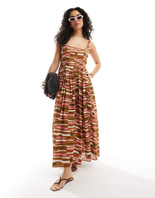 ASOS DESIGN - Midi picknick-zonnejurk van voile met streepprint
