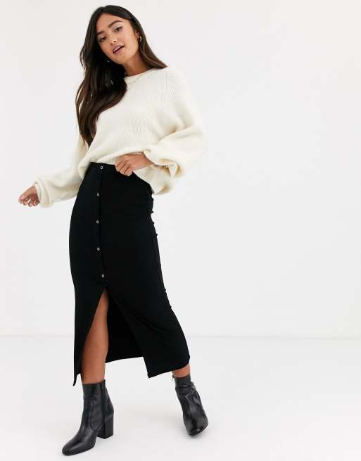 ASOS DESIGN - Midirok met drukknopen in zwart