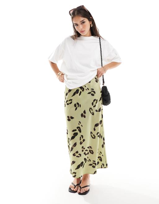 ASOS DESIGN - Midirok van schuin gesneden satijn in crème met luipaardprint