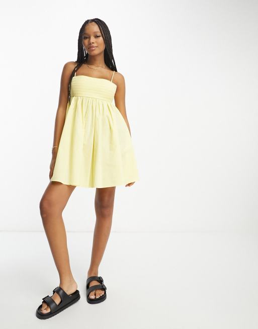 ASOS DESIGN - Mini babydoll zonnejurk van katoen met geplooide buste in limoengroen