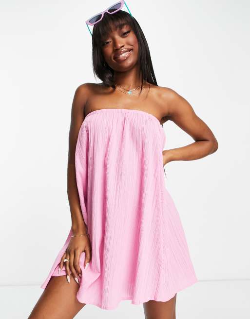 ASOS DESIGN - Mini bandeau-strandjurk in roze