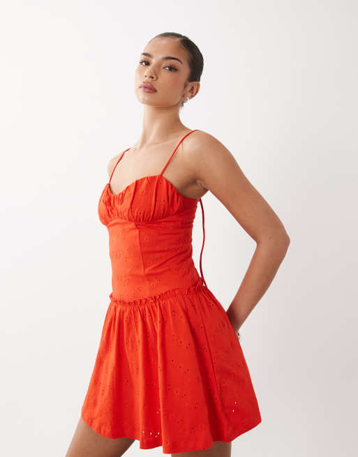 ASOS DESIGN - Mini cami-jurk met broderie in rood