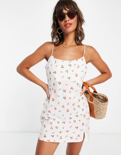 ASOS DESIGN - Mini-camijurk van linnen met frambozenprint