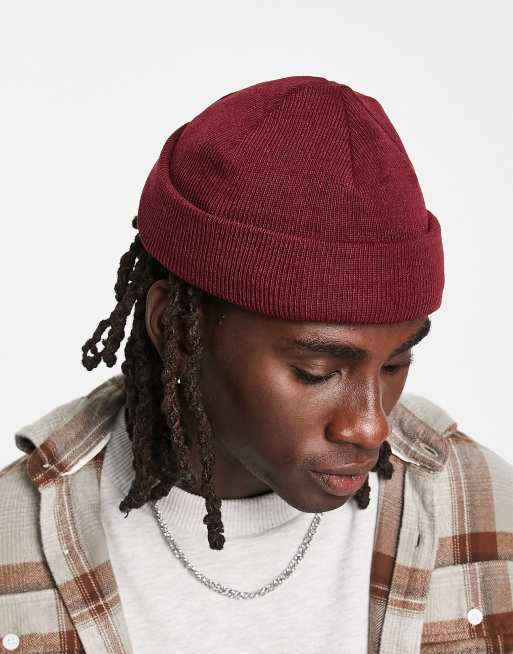 ASOS DESIGN - Mini geribbelde vissersbeanie in bordeauxrood