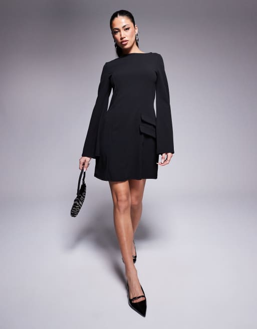 ASOS DESIGN - Mini-jurk in scubastijl met wijde lange mouwen en dubbele zakken in zwart