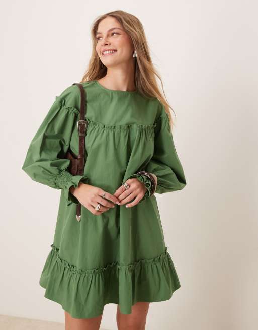 ASOS DESIGN - Mini jurk van poplin katoen met ronde hals in groen
