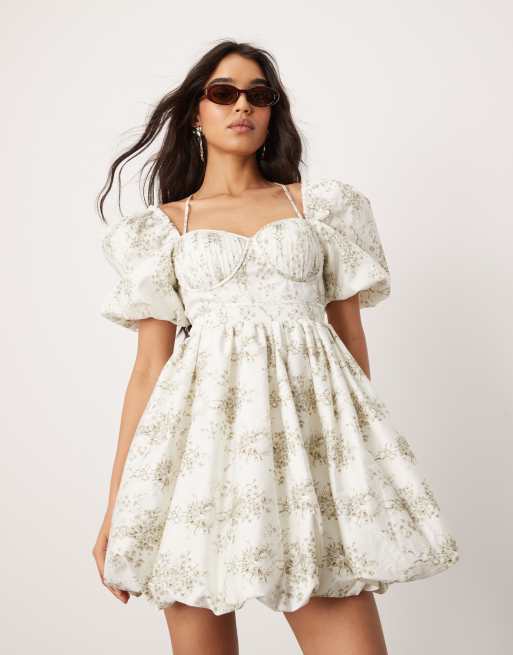 ASOS DESIGN - Mini-pofjurk met korsetlijfje en bloemenprint