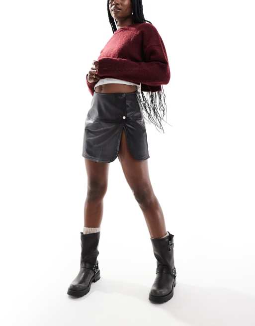 ASOS DESIGN - Mini rok met leerlook en drukknopen in zwart