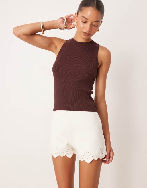 ASOS DESIGN - Mini-short van pontestof met geborduurde zoom in wit
