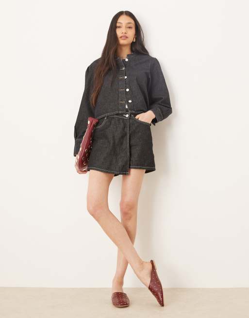 ASOS DESIGN - Mini-skort van denim in zwart en ecru