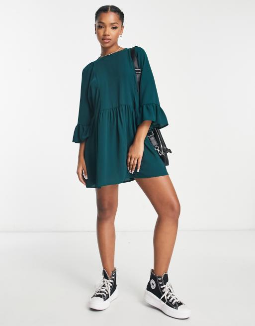 ASOS DESIGN - Mini smockjurk met vleermuismouwen in flessengroen