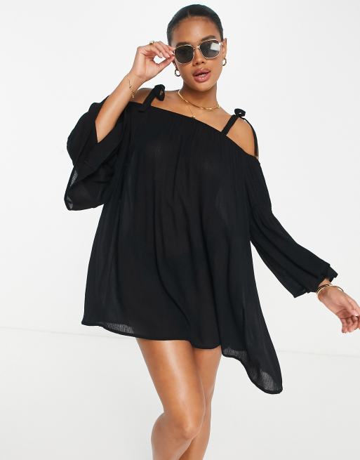 ASOS DESIGN - Mini-strandjurk met blote schouders in zwart
