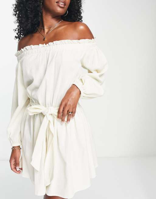 ASOS DESIGN - Mini-strandjurk van super gekreukelde stof met blote schouders in naturel