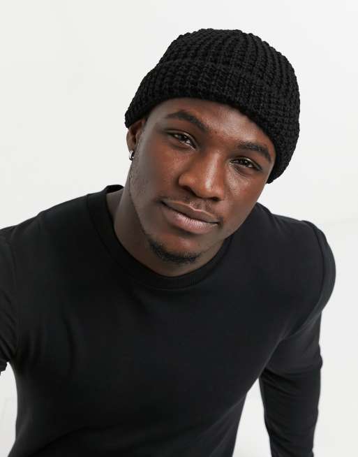 ASOS DESIGN - Mini-vissersmuts in zwart met wafeltextuur