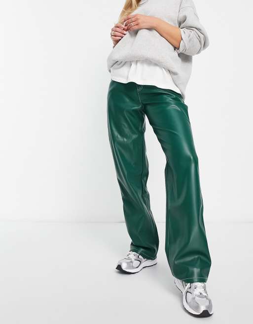 ASOS DESIGN - Minimalistische cargobroek van imitatieleer in groen met contrasterende stiksels